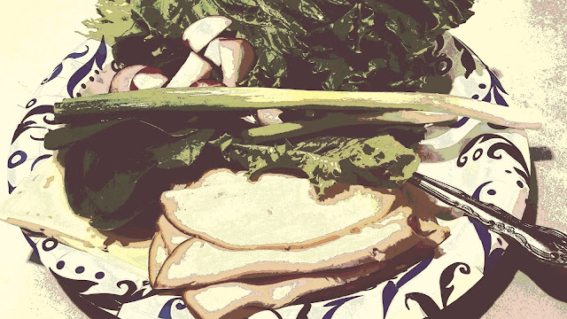 My lunch last week, basic low cal low carb fresh greens and proteins. I ran it through things like cartoon and posterize and other filters, pleasantly surprised how well it held up.